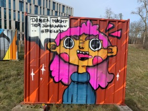 Die Zaunfelder waren im Sommer 2020 zunächst für eine Freiluft-Galerie anlässlich der EinheitsEXPO von jungen Graffiti-Künsterlinnen und – Künstlern aus Potsdam und Umgebung gestaltet worden. So war eine temporäre Ausstellung zum Thema „30 Jahre Deutsche Einheit“ entlang des ILB-Standortes am Nuthepark entstanden.